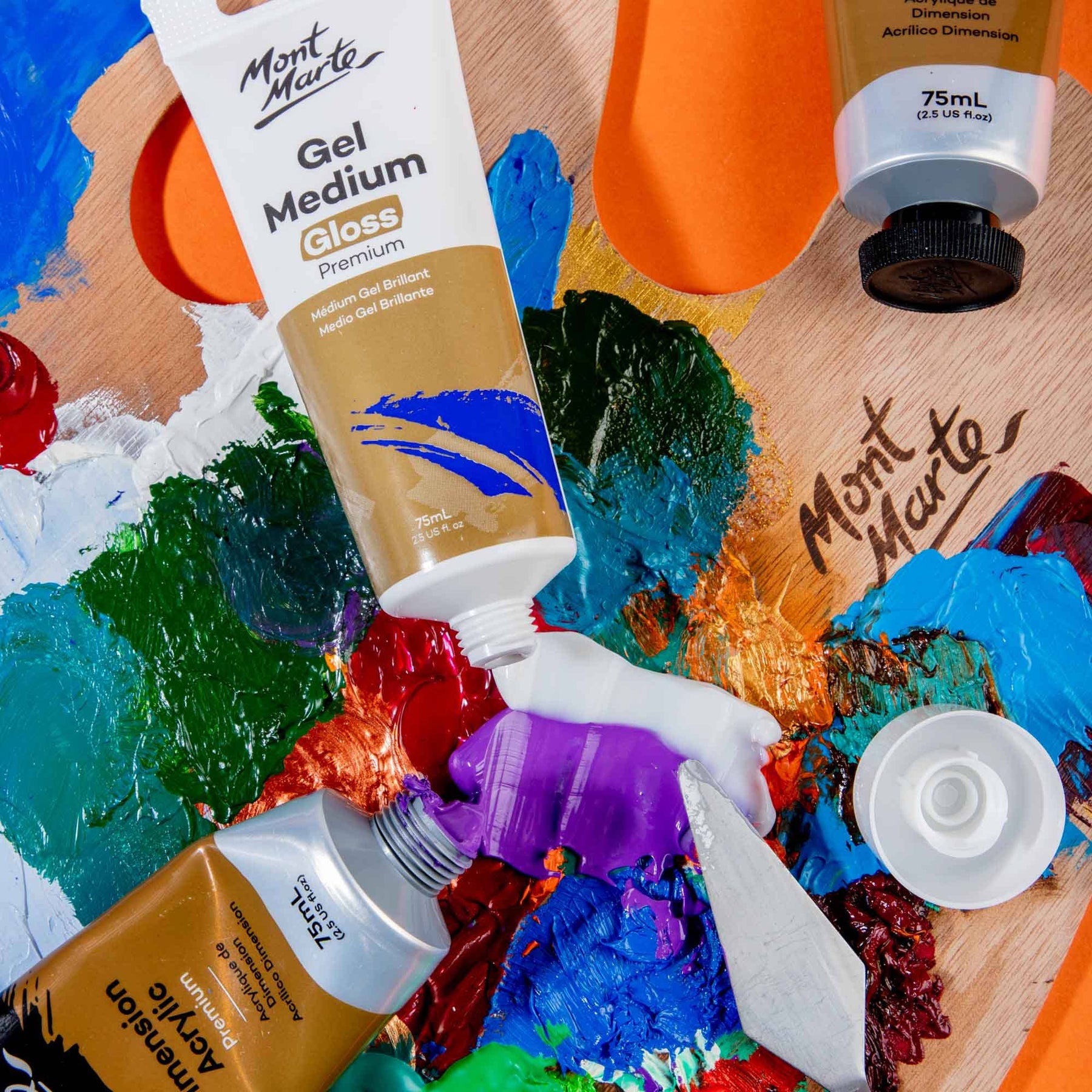Mont Marte Gel Medium Gloss is used to increase transparency and add gloss when added to your acrylic paint. Ideal for use as an adhesion for collages and craft projects.