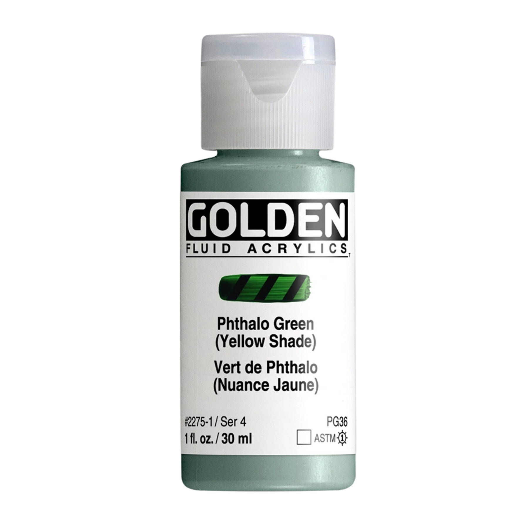 Golden Fluid Acrylic Paint 1oz - Phthalo Green, Yellow Shade