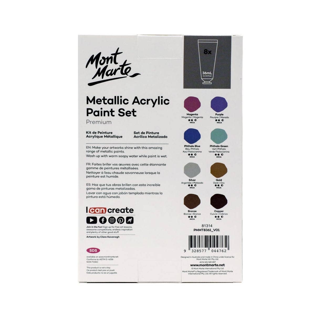 Metallic Acrylic Paint Set Premium 8pc x 36ml (1.2oz)