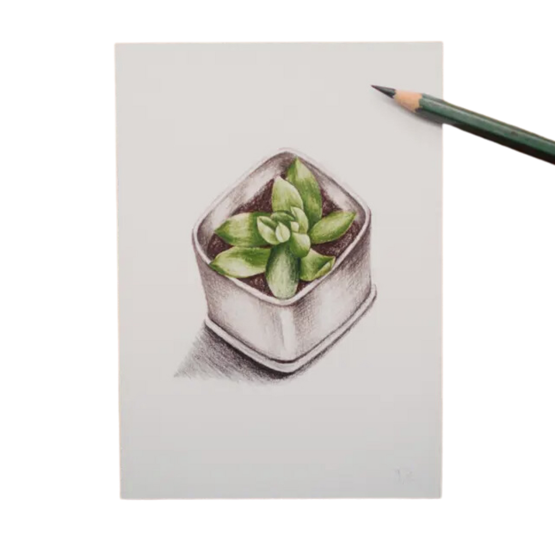 A 5"x7" print of an original colored pencil illustration of a graptoveria succulent houseplant. This soft and delicate illustration is a lovely addition to the plant lover's home.