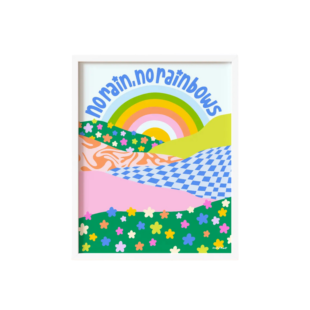 "No Rain, No Rainbows" Digitally printed on 230 gsm acid free/archival paper with a matte finish and packaged with a chipboard backer; frame not included.