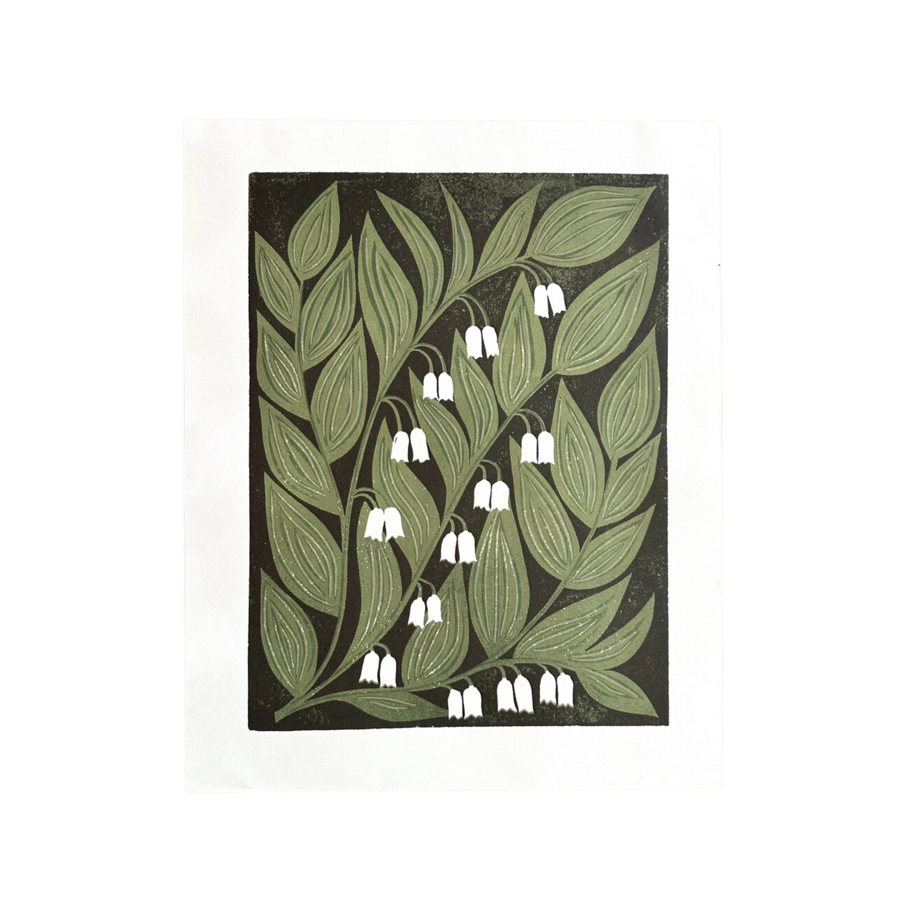 This stunning poster reproduction features a Solomon's Seal botanical design, originally created as a four-layer reduction block print. Now available as a high-quality poster print, this piece beautifully captures the intricate details and depth of the original artwork.