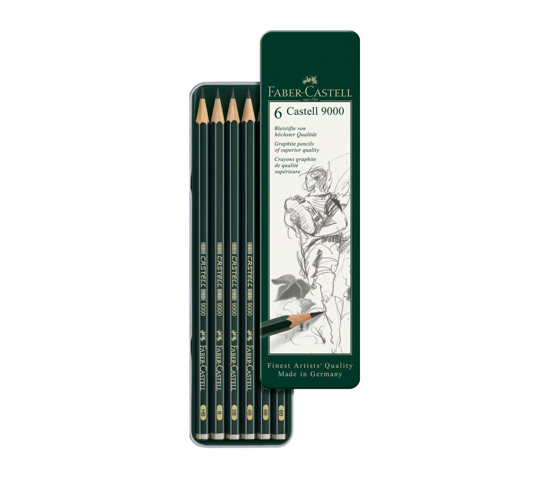 Castell 9000 Graphite Pencils for Drawing, Tin of 6