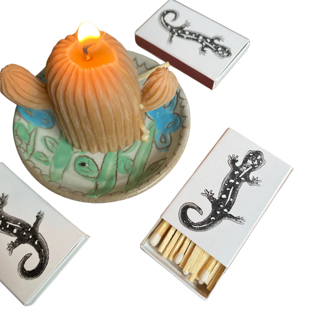 These adorable hand-printed matchboxes are made using small linoleum carvings, turning everyday essentials into little works of art! Each box features a unique design printed on one side, and comes stocked with 25 matches—perfect for lighting candles, incense, or just adding a touch of charm to your space.