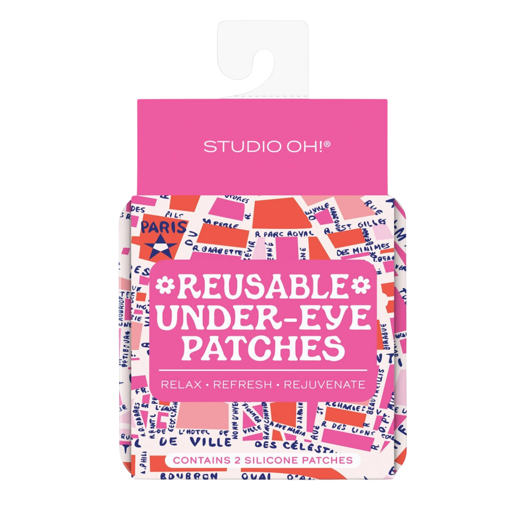 Relax, refresh, and rejuvenate with 100% silicone under-eye patches from Studio Oh! Available in multiple designs, the on-trend artwork on these patches matches their decorative tin storage boxes. Use them with your favorite serums or creams to boost hydration and reduce under-eye puffiness. Refrigerate before use if you desire an additional calming effect and cooling sensation. Incorporate these delightful patches into your next at-home spa day, along with additional self-care products from Studio Oh!—shower oils, bath salts, manicure sets, nail wrap kits, and more!
