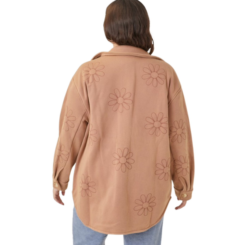 Experience the perfect blend of style and comfort with the Button Up Shacket with Daisy Embroidery Detail from Polagram by Wellmade USA. This shirt jacket, or shacket, is not just a piece of clothing but a statement of individuality. The unique daisy embroidery detail adds a touch of youthful charm, making it a versatile addition to your wardrobe. It's ideal for those seeking to express their contemporary style while valuing quality and affordability. Embrace the inspiration that Polagram brings to the fashion industry with this elegant piece.