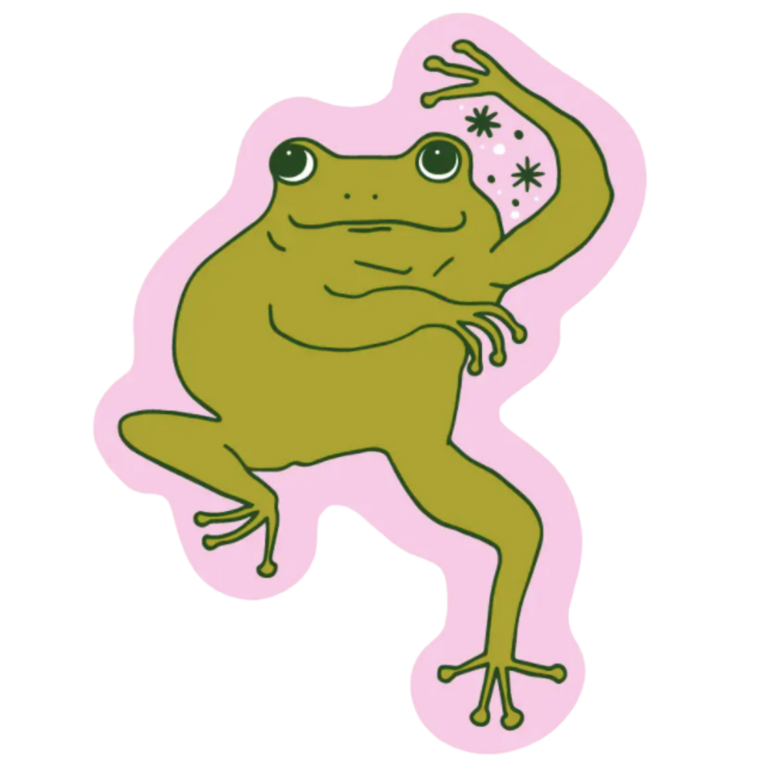 Bring some joy to your day with this Dancing Frog Sticker! Featuring an adorable frog mid-celebration, this high-quality, water-resistant sticker is perfect for decorating water bottles, laptops, notebooks, and more.