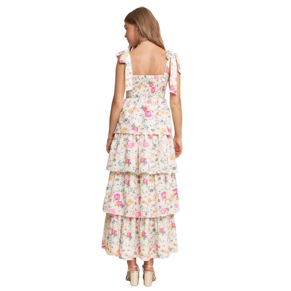 Feminine and floaty, this pink peony print maxi dress brings major romantic vibes. Featuring an empire neckline and adjustable tie straps, it’s designed to flatter while keeping things light and breezy. The tiered silhouette gives it an effortless, flowy feel—perfect for sunny strolls, garden parties, or casual brunches.