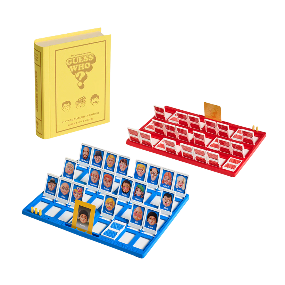 Bring back the fun of 1991 with this Guess Who? Vintage Bookshelf Edition! The classic mystery game challenges players to uncover their opponent’s secret character by asking clever yes-or-no questions. Is there a hat? Glasses? Narrow down the suspects and be the first to solve the case!