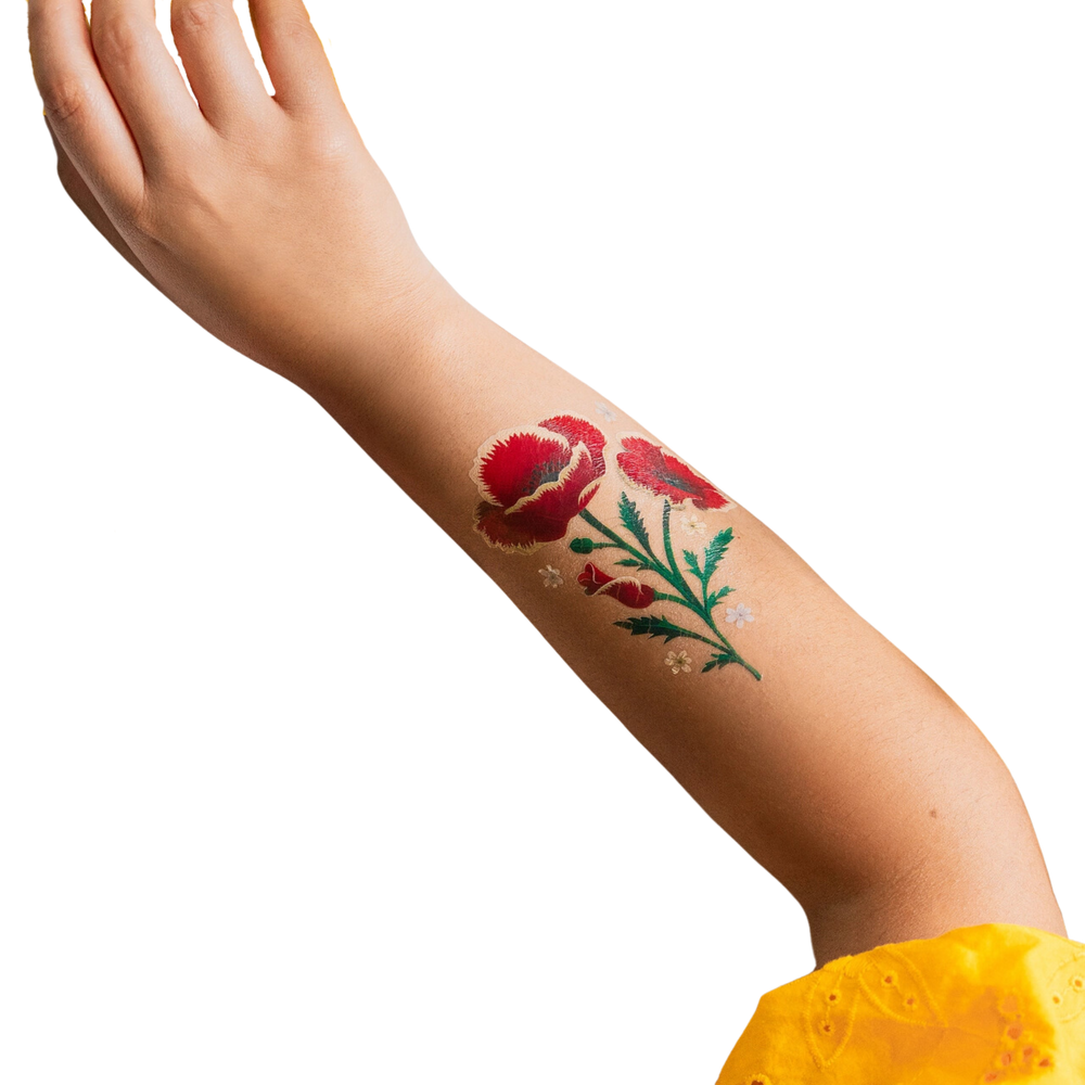 Poppies (FK) Tattoo Pair, part of the Frida Kahlo Collection. Quality, non-toxic and made in the USA. Fake tattoos by real artists! Tattly Pairs include two of each design.