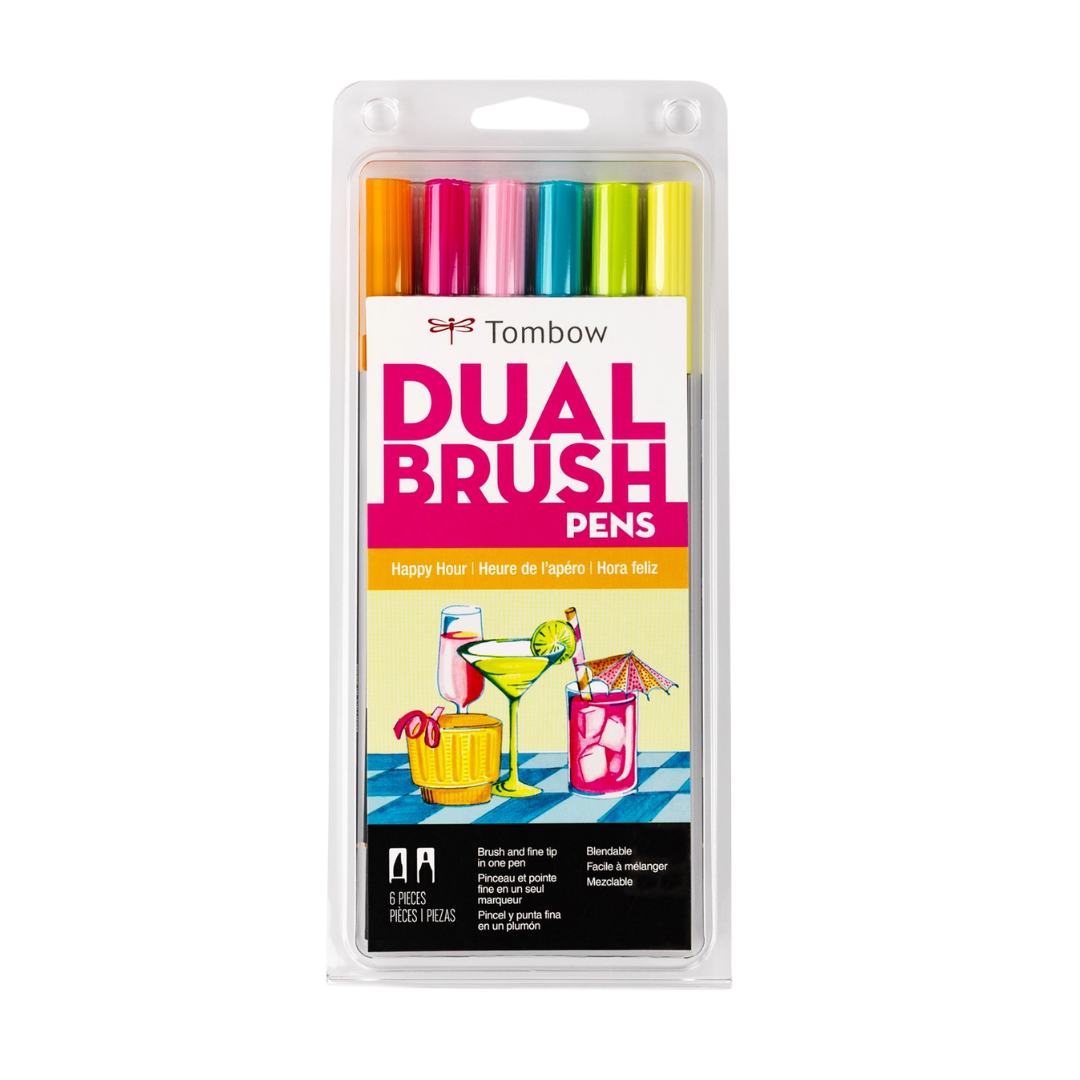 Dual Brush Pen Art Markers: Happ Hour, 6-Pack