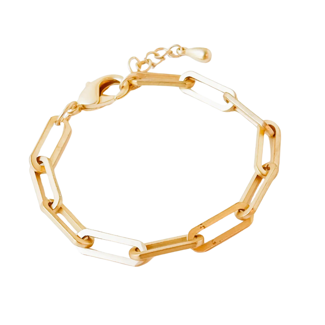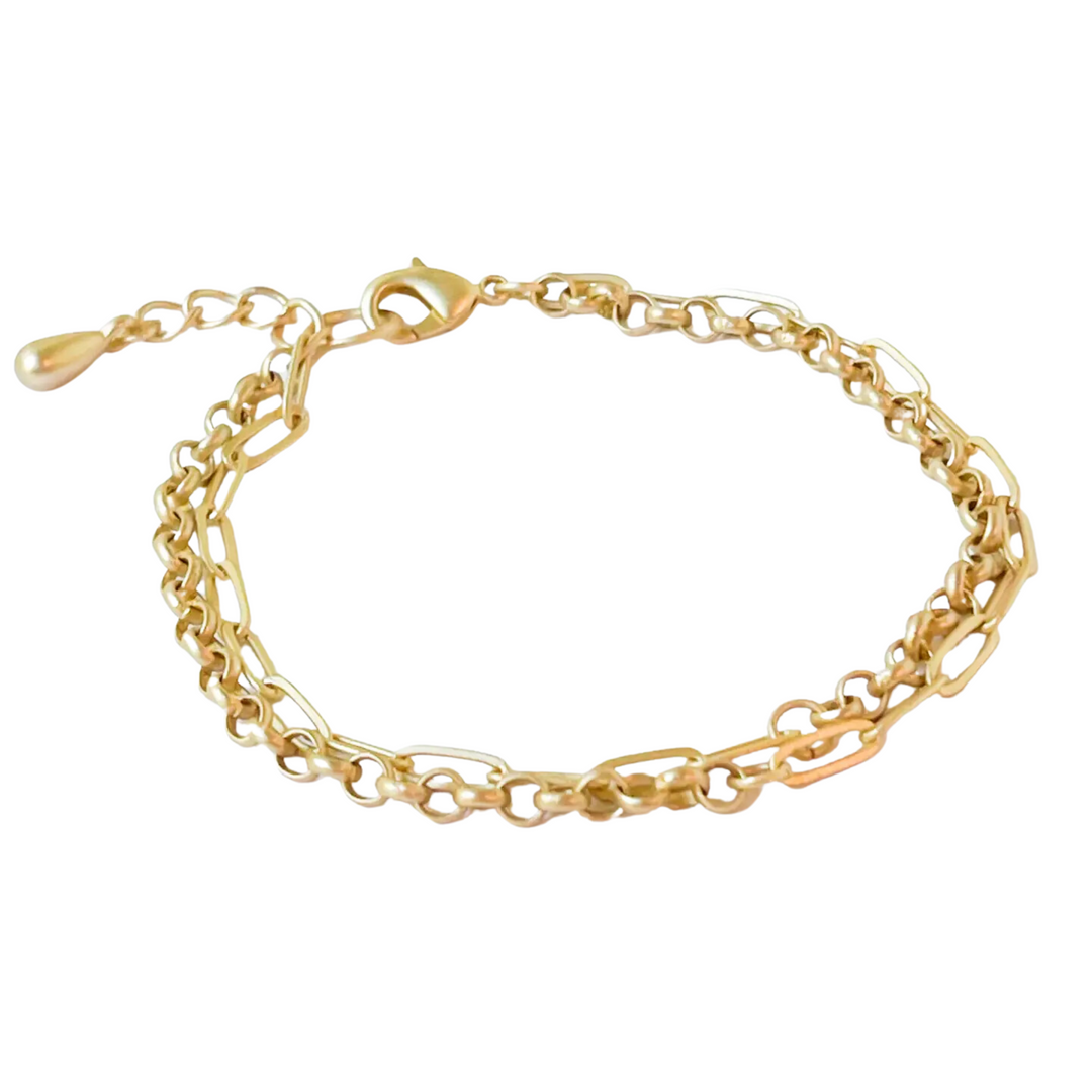 Adjustable Double Chain Gold Paperclip and Rolo Bracelet