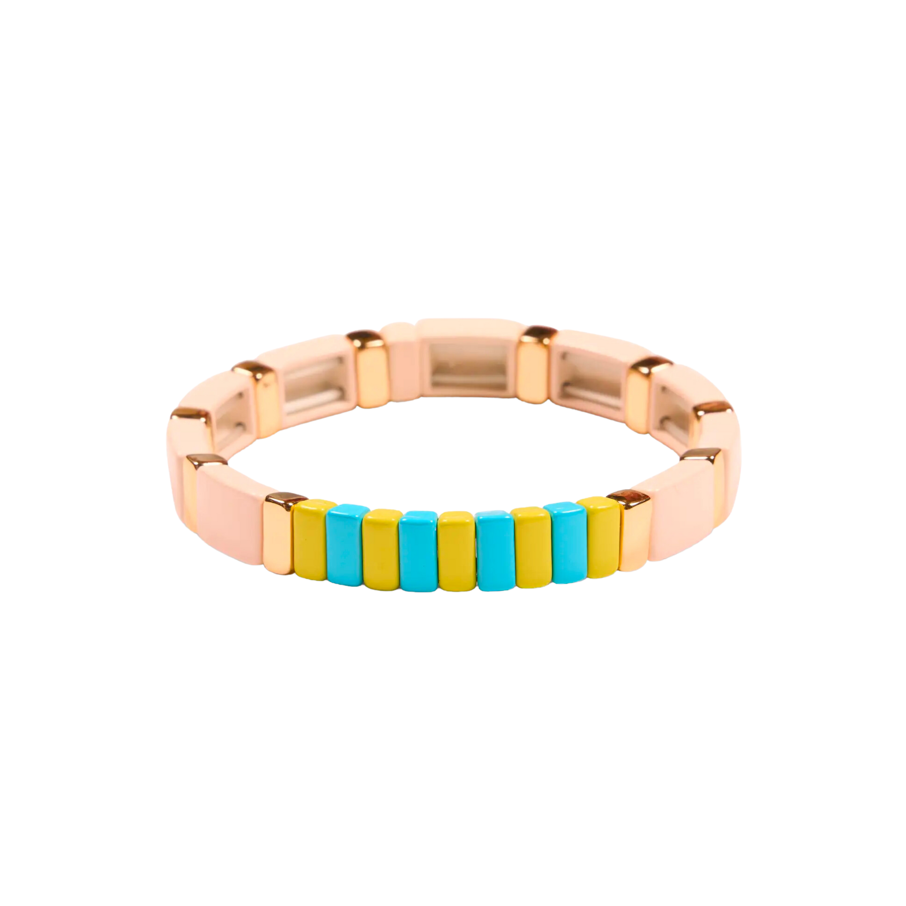 Pastel cloud 2 - beige w/ blue & lime tile bracelet
