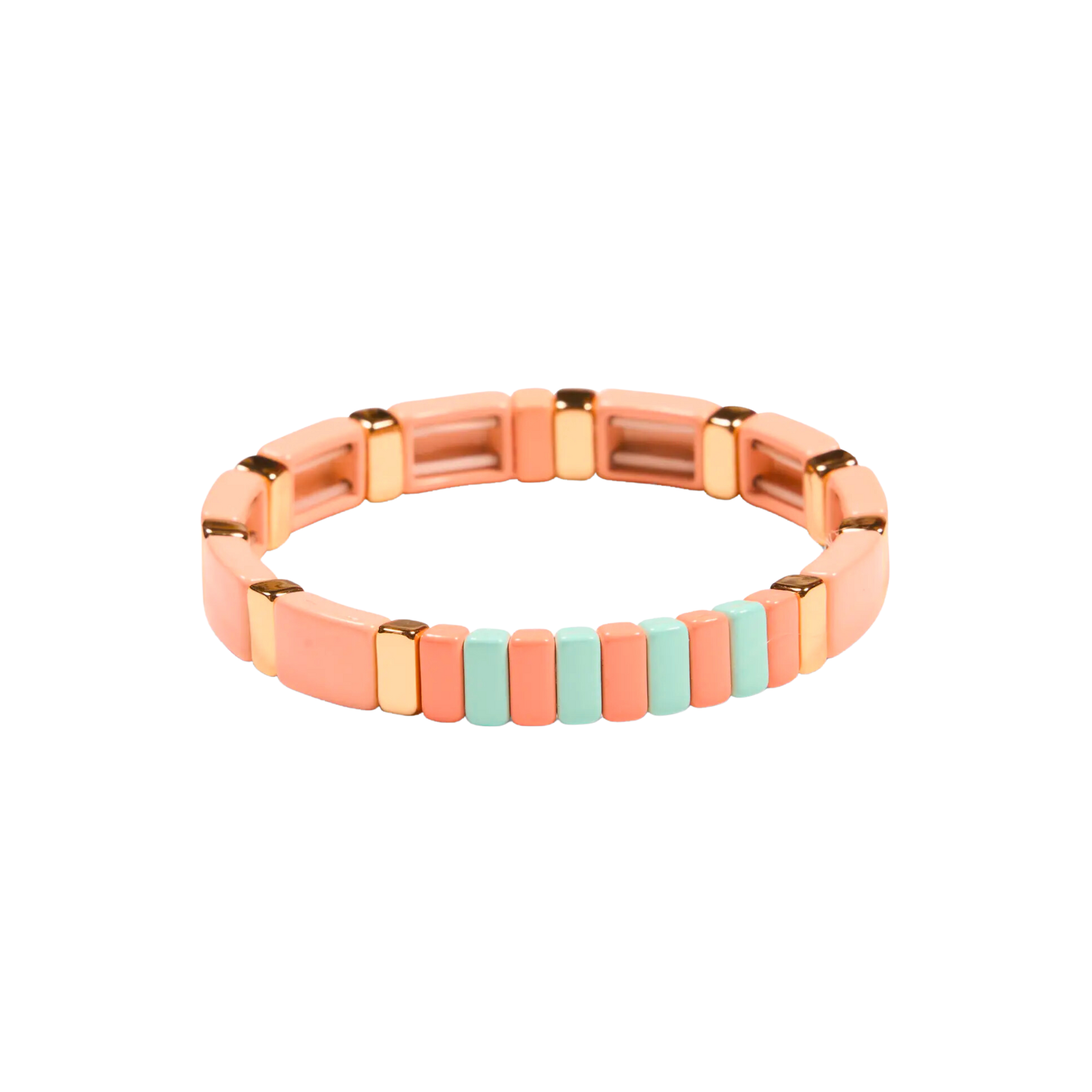 Pastel cloud 3 - peach w/ melon & light blue tile bracelet