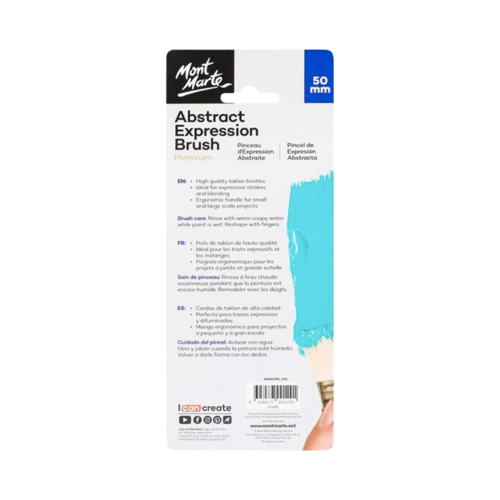 The Mont Marte Abstract Expression Brush is great for producing fluid, expressive strokes. The ergonomic handle allows for hours of easy movement on small and large scale products.