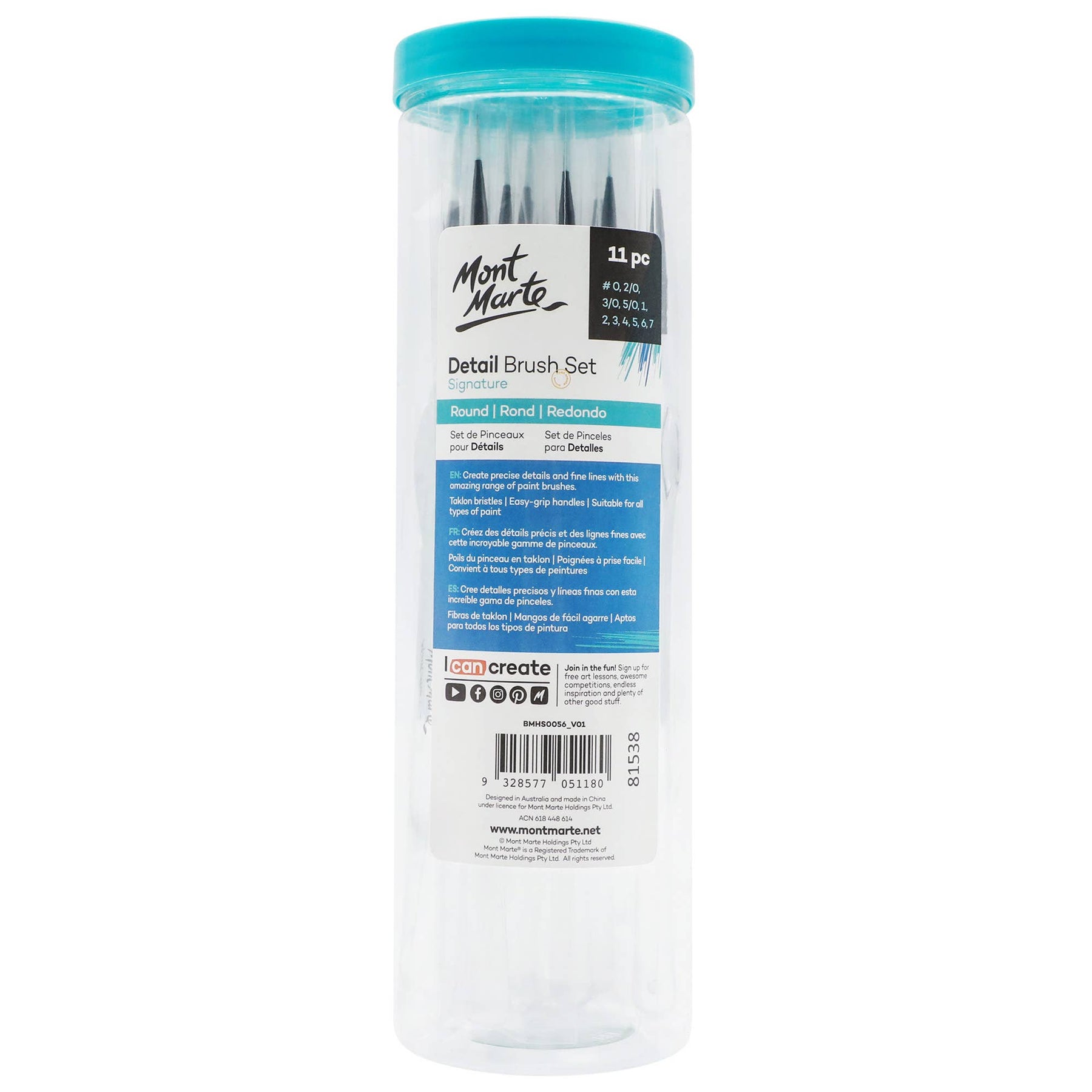 If you're looking to work in some fine lines or detail into your next project, our Detail Brush Set 11pc is up for the job! This brush set features 11 brushes with sturdy taklon bristles and easy-grip handles, meaning more control and comfort during those long creative sessions. Plus, these versatile brushes suit all types of paint, including acrylic, oil, watercolor and gouache. These detail paintbrushes also come in a handy storage container, so you can keep them organized in your creative space or while you're on the go.