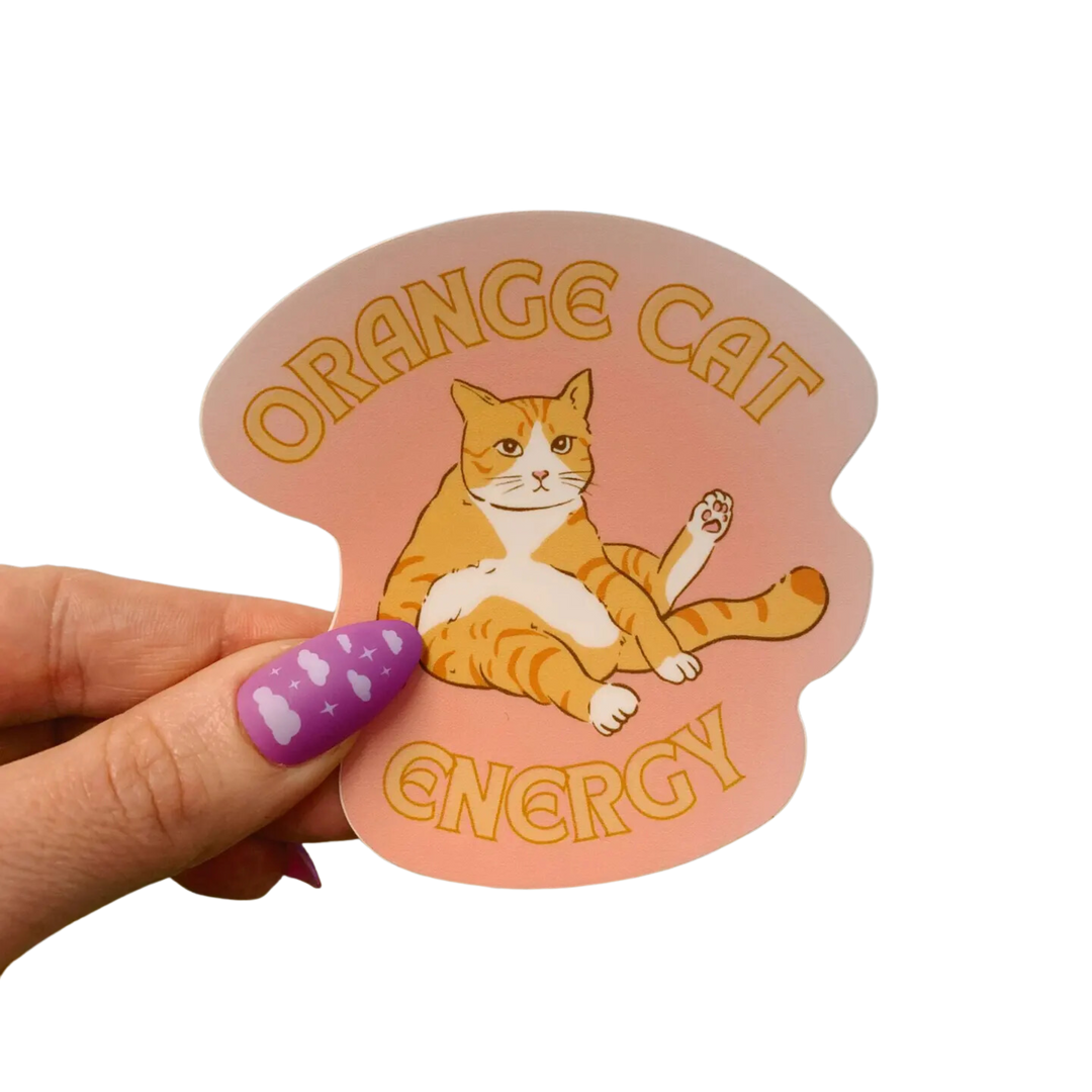 Orange Cat Energy Glossy Die Cut Vinyl Sticker
