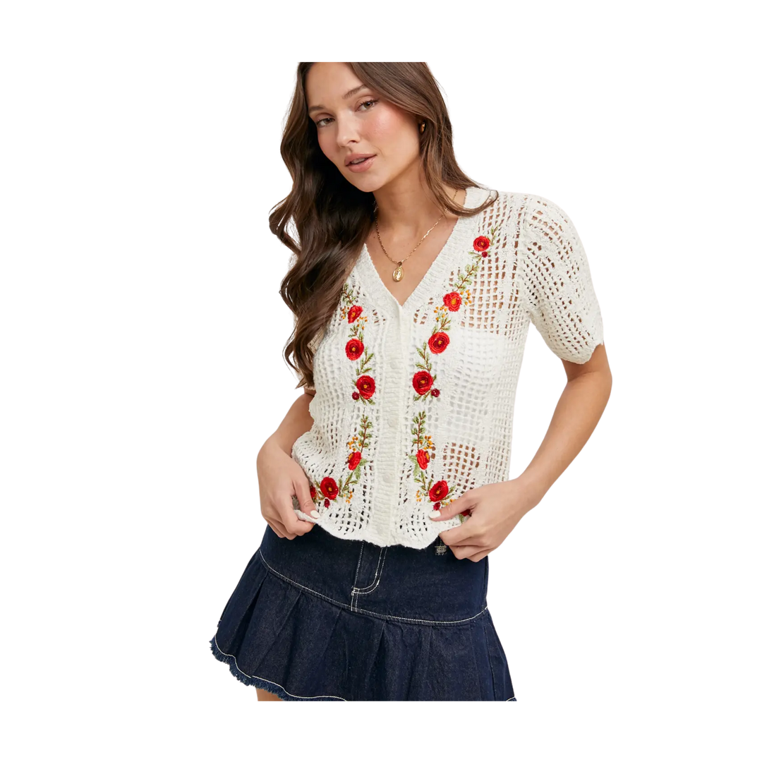 Plus Daisey Embroidered Wide Sleeve Denim Jacket
