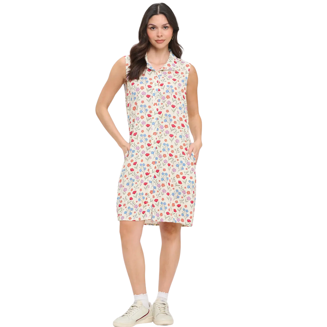 Multi Checker Floral Puff Sleeve Puff Midi Dress