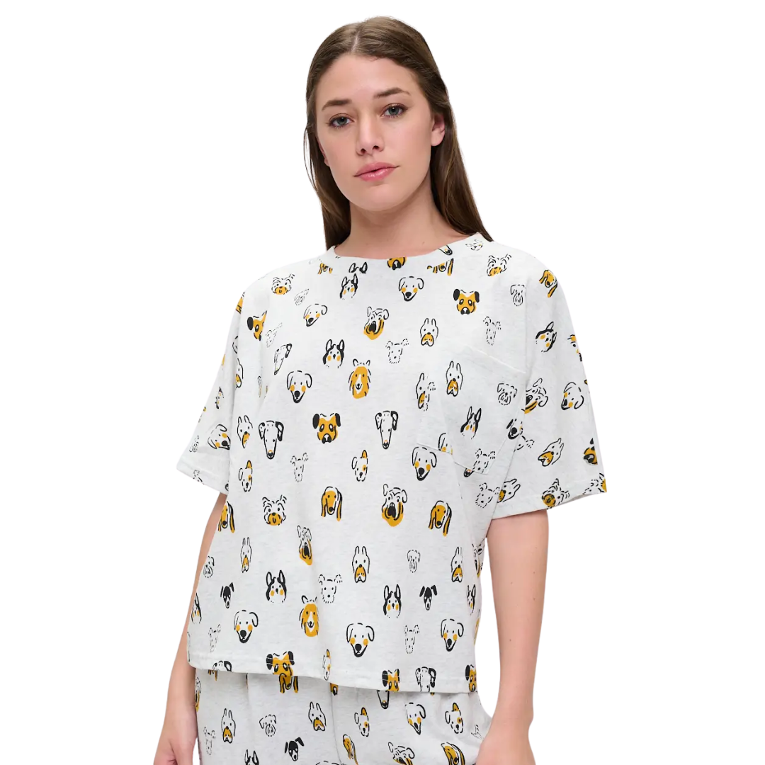 Colorful Dog Head Print Relaxed Fit T-Shirt