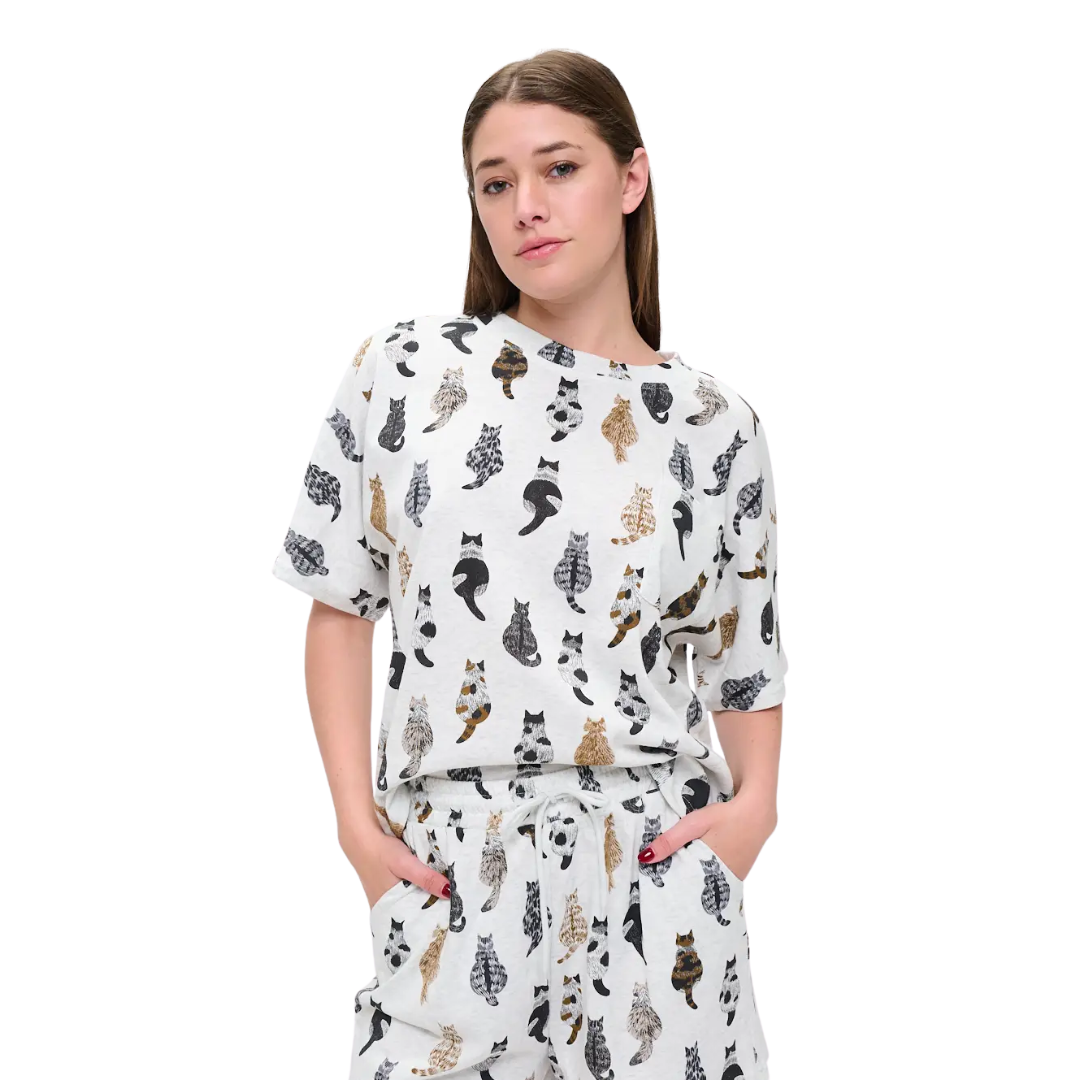 Whimsical Cat Tails Print Relaxed Fit T-Shirt