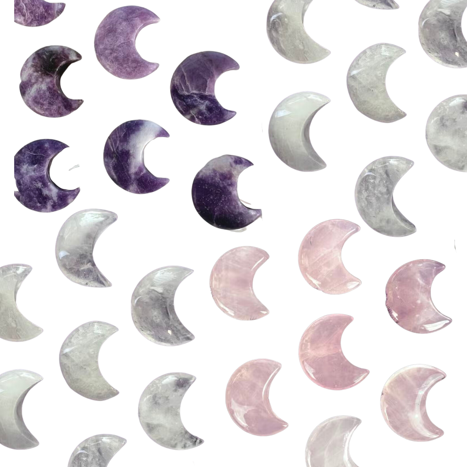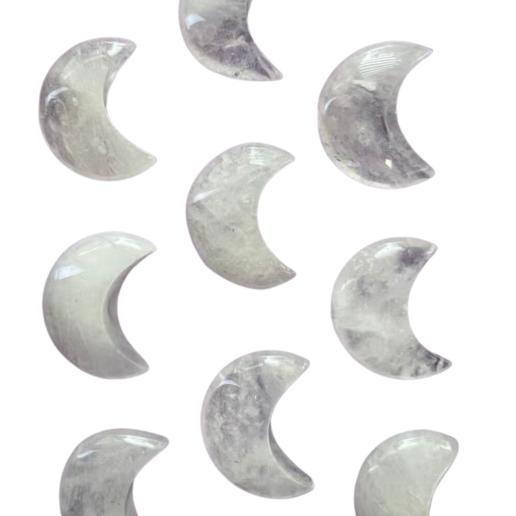 Crystal Moons offer a unique, natural look, with each crystal slightly differing in shape, size, hue, or texture. Since these come from nature each will be a little different, and it is normal to find a formation crack line, small hole, or difference in shape/color. But all will be equally beautiful!