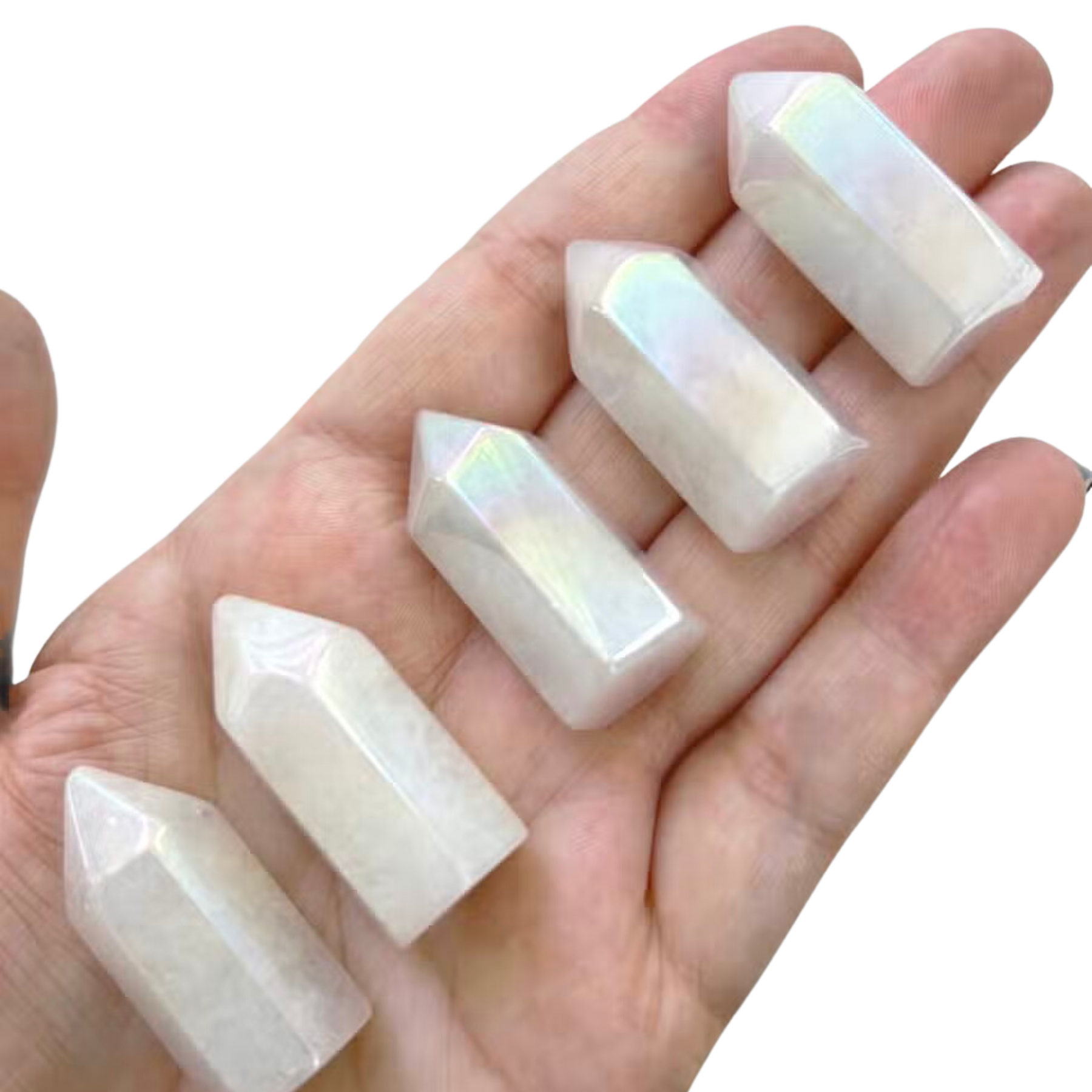 *Note* Quartz is a natural crystal, and the beautiful rainbow aura is a man-made effect that is added afterward! Aura can fade over time after handling.
