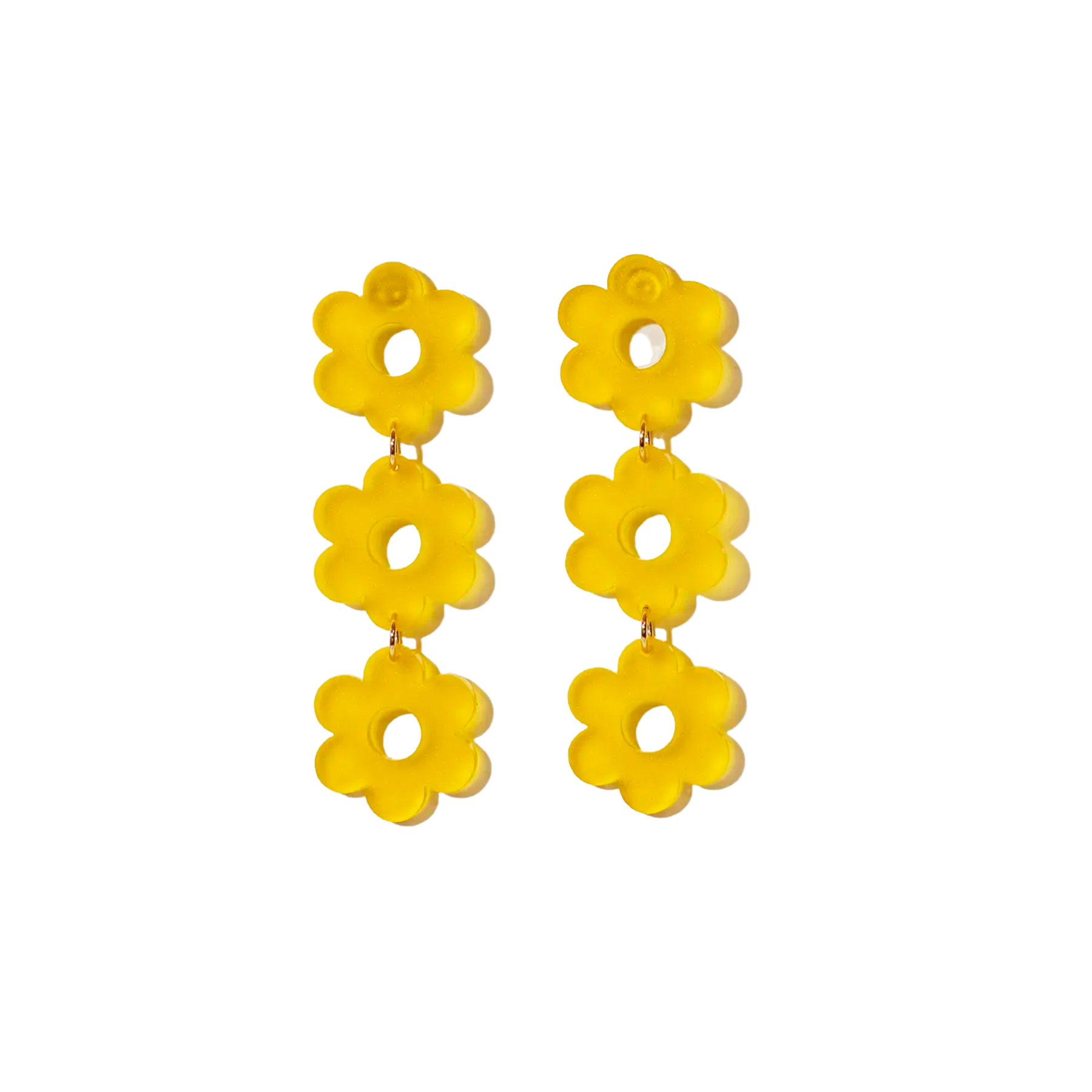 These hypoallergenic earrings are the perfect way to show off that vintage aesthetic you've been dying to flaunt. Three dangly vintage inspired daisy flowers.