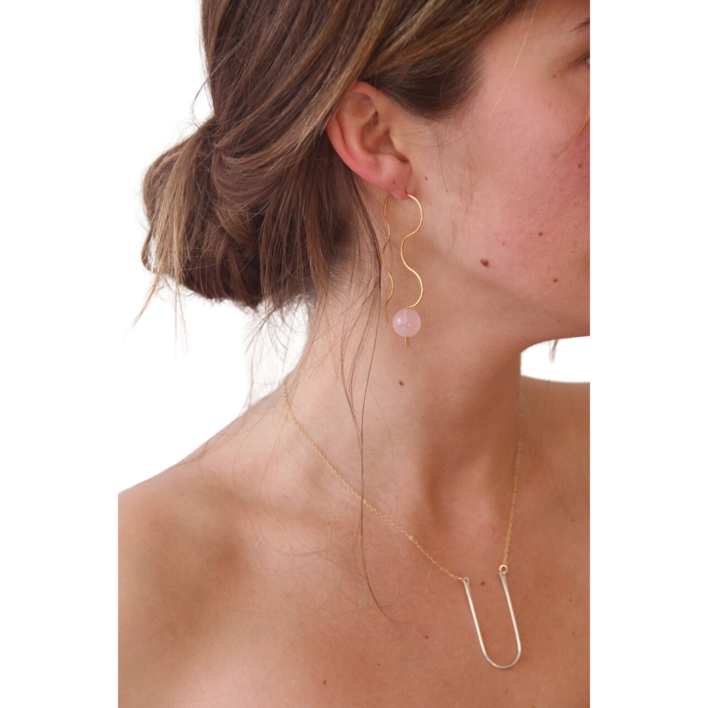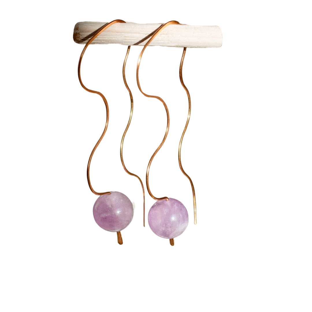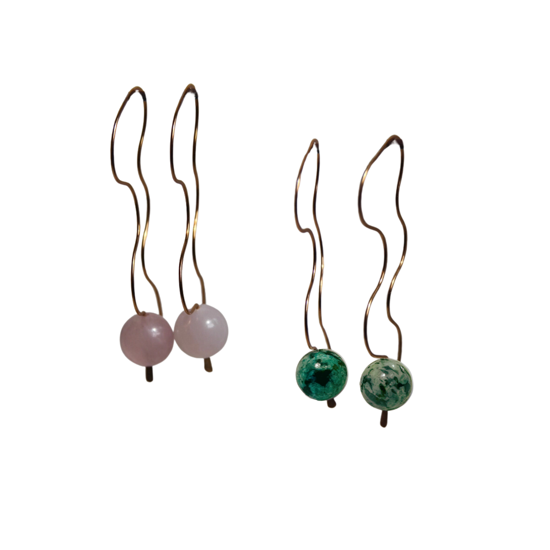 Nomad- Hammered Brass and Pink Gemstone Earrings