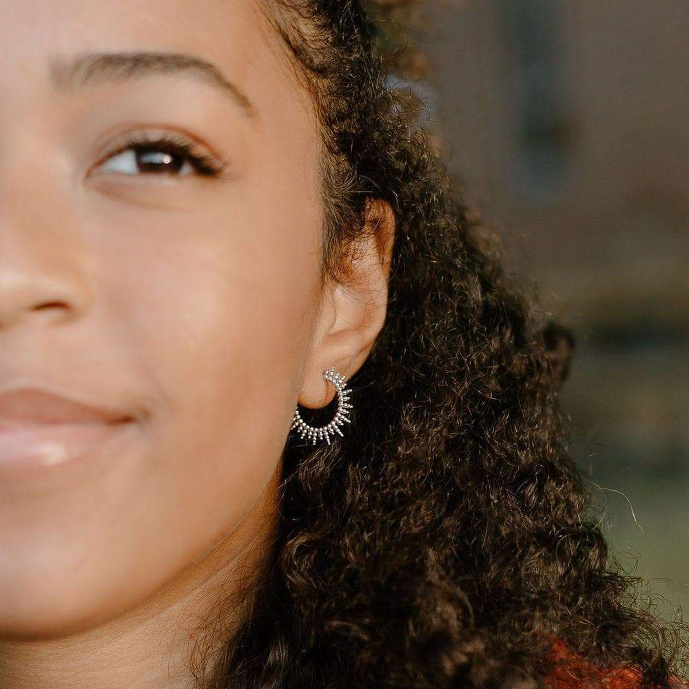Asteria LITE Earrings - Tiny brass hoops/silver chevron