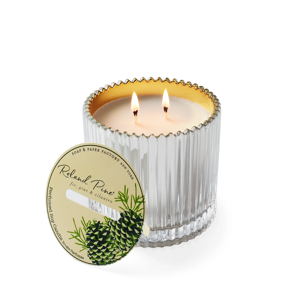 Roland Pine 14 oz Silver & Gold Two-Wick Ribbed Glass Candle