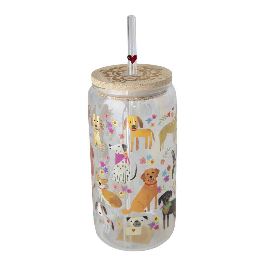 Glass coffee tumbler comes with bamboo lid and cute heart glass straw