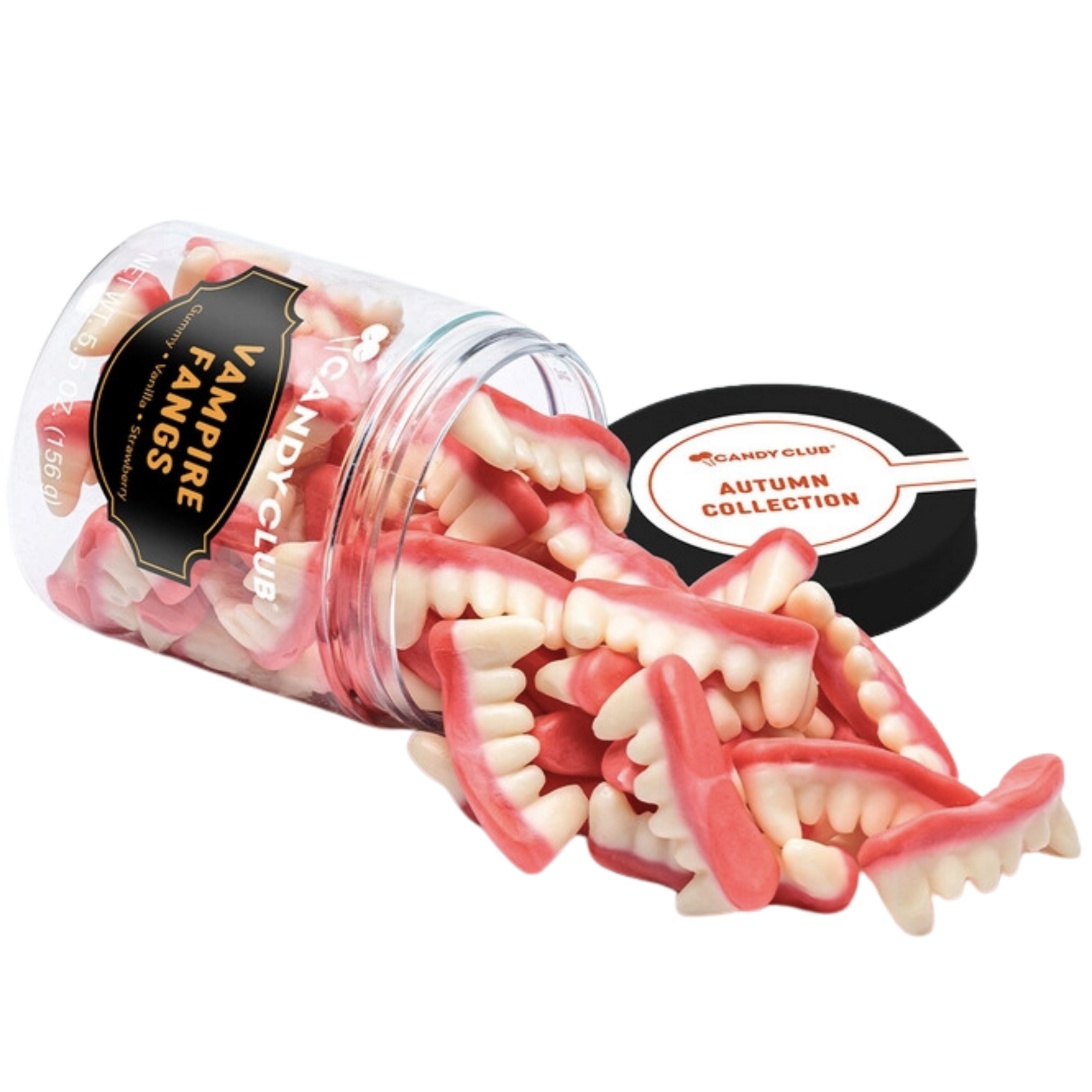 Sink your teeth into these! Each gummy bite brings a fang-tastic burst of strawberry and vanilla flavor that's vampire-approved! Gear up for a frightfully delicious season with our spooky sweet Halloween candy! Perfect for Halloween parties, trick-or-treat bags, and spooky events. Candy Club's seasonal Halloween collection includes a tasty mix of spine-chilling gummies and playfully festive treats that ghosts and ghouls of all ages will love!