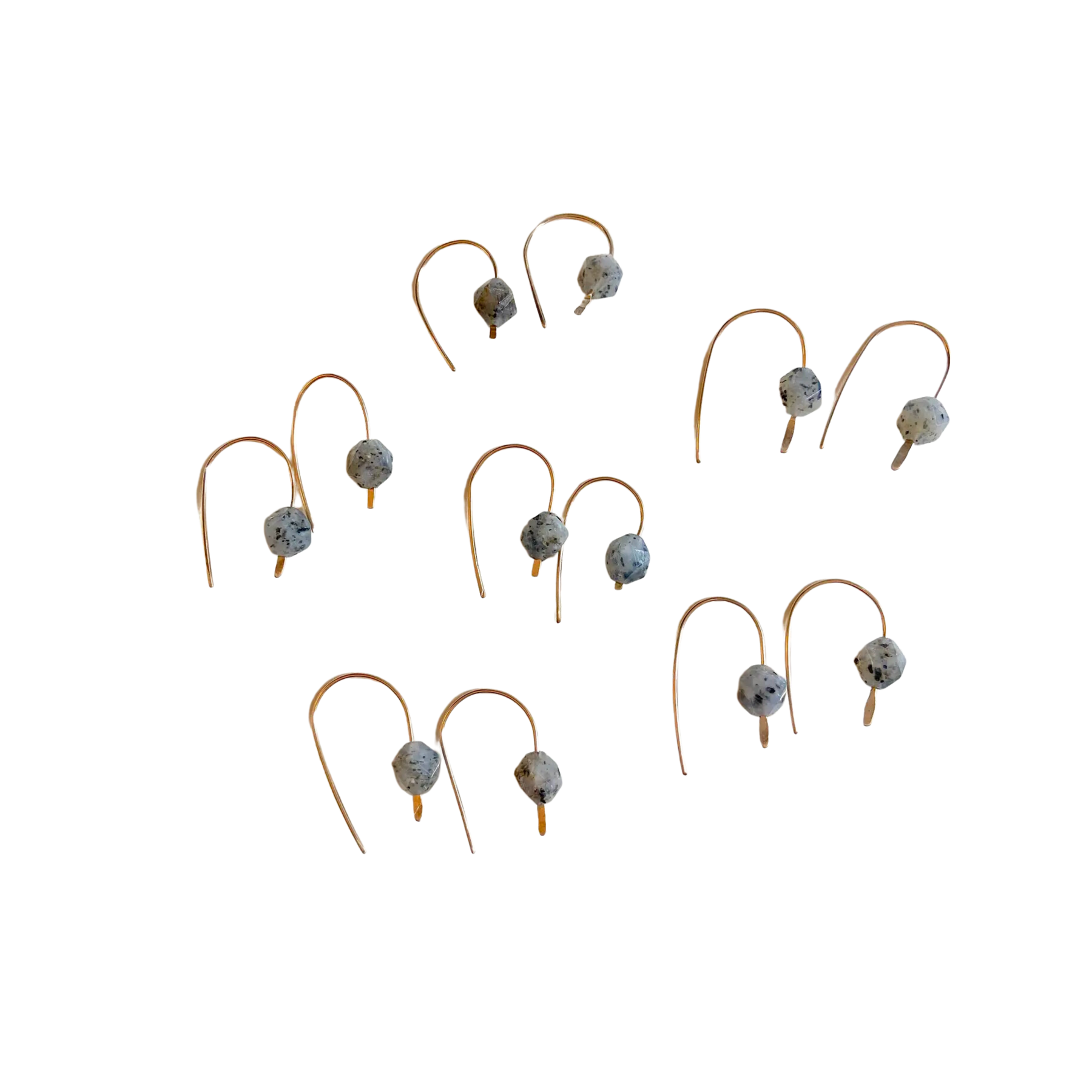 Each handcrafted gemstone earring has been lovingly stamped, hammered, or sanded by hand, reflecting the ornate and intricate metalwork of eras past. The intentional beauty in their imperfections ensures that no two pairs are exactly alike—each piece is truly one of a kind.