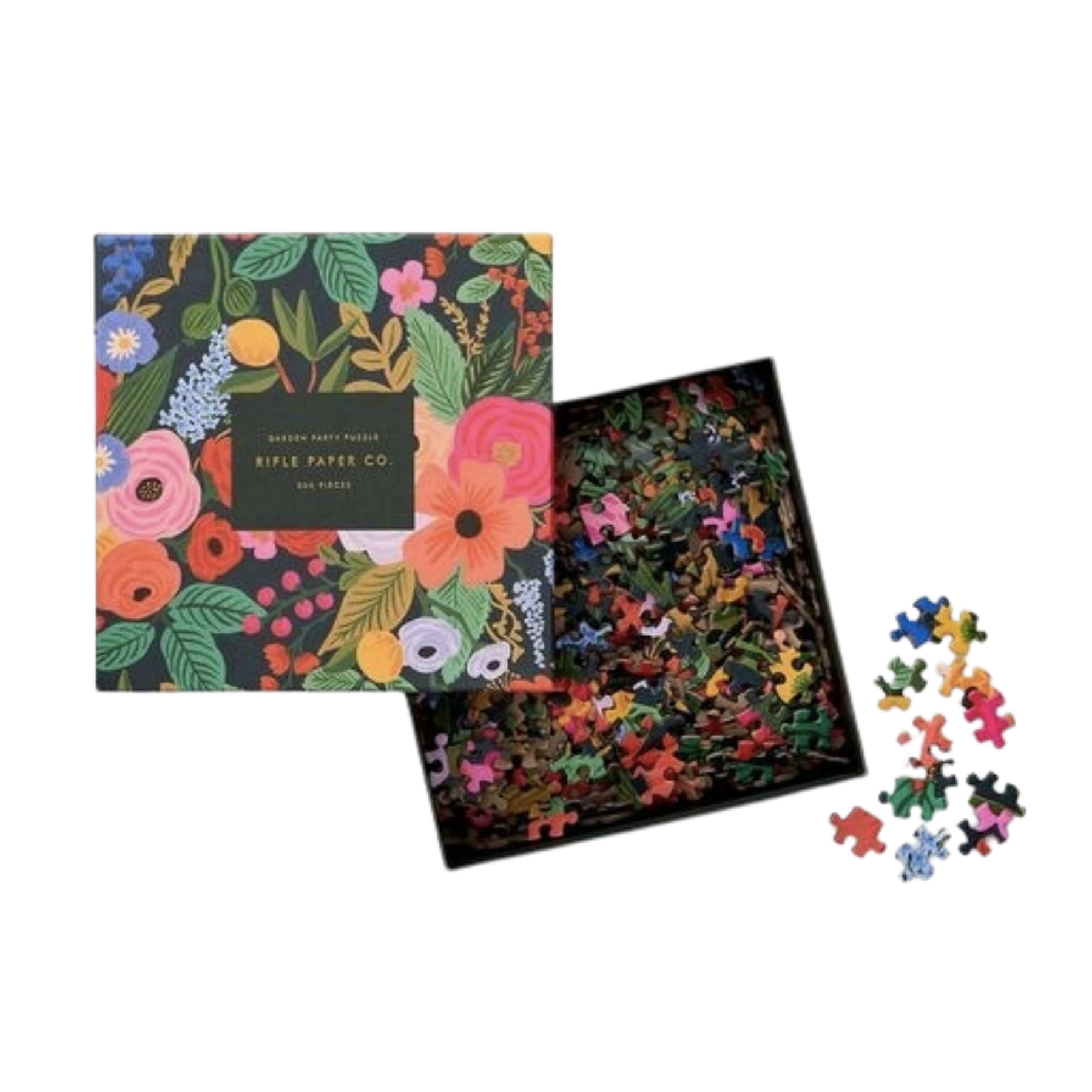 Take a strolling adventure through a vibrant garden filled with lively flowers, verdant foliage, and vibrant produce with our Garden Party jigsaw puzzle. This illustrated puzzle comes with 500 pieces, packaged in an ornamental box with shiny gold details. - Greyboard with matte finish - Printed in full color - Assembled Puzzle Size: 21" L × 15" W - Box Size: 8.25" L × 8.25" W - 500 pieces - Puzzle piece size approx. 0.75" - Paper-wrapped gift box with gold foil accents