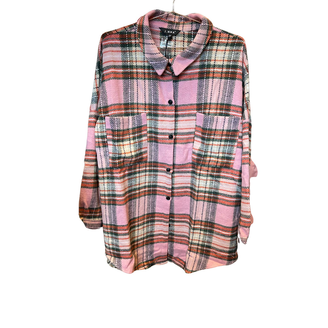 Plaid Button Down Jacket Top- Plus Size 1X-3X Pink Orange