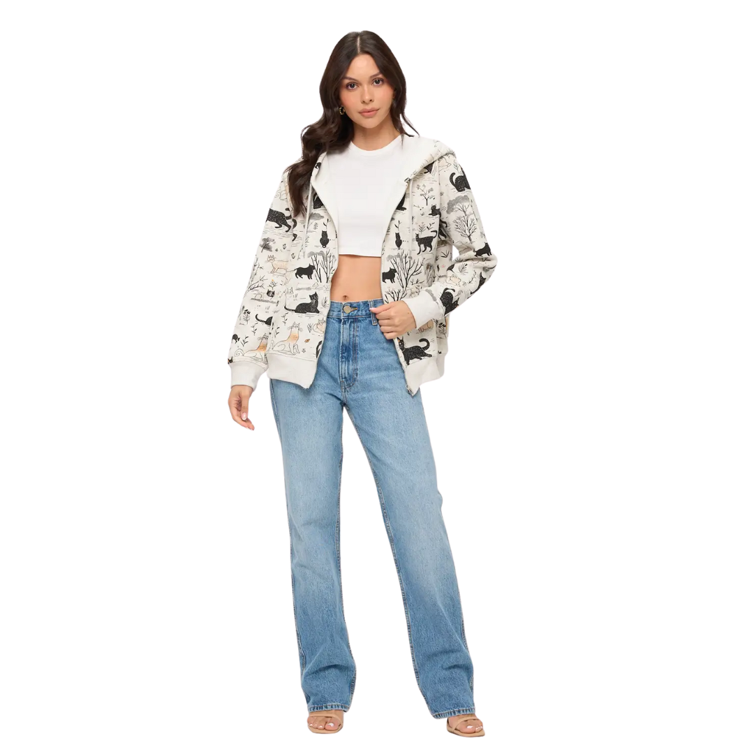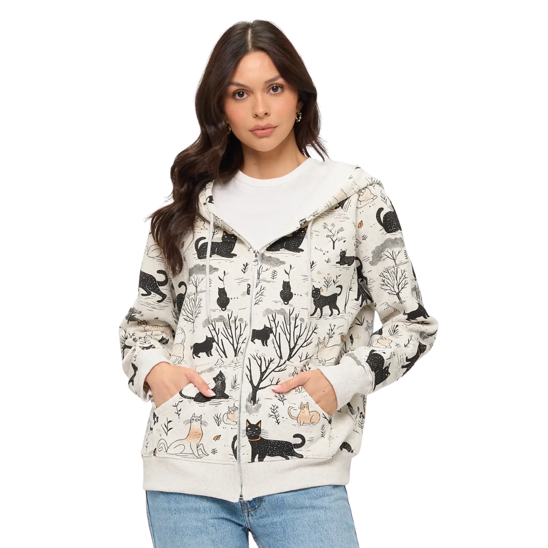 Whimsical Cat Forest Print Zip Up Hoodie 🐱🌲✨