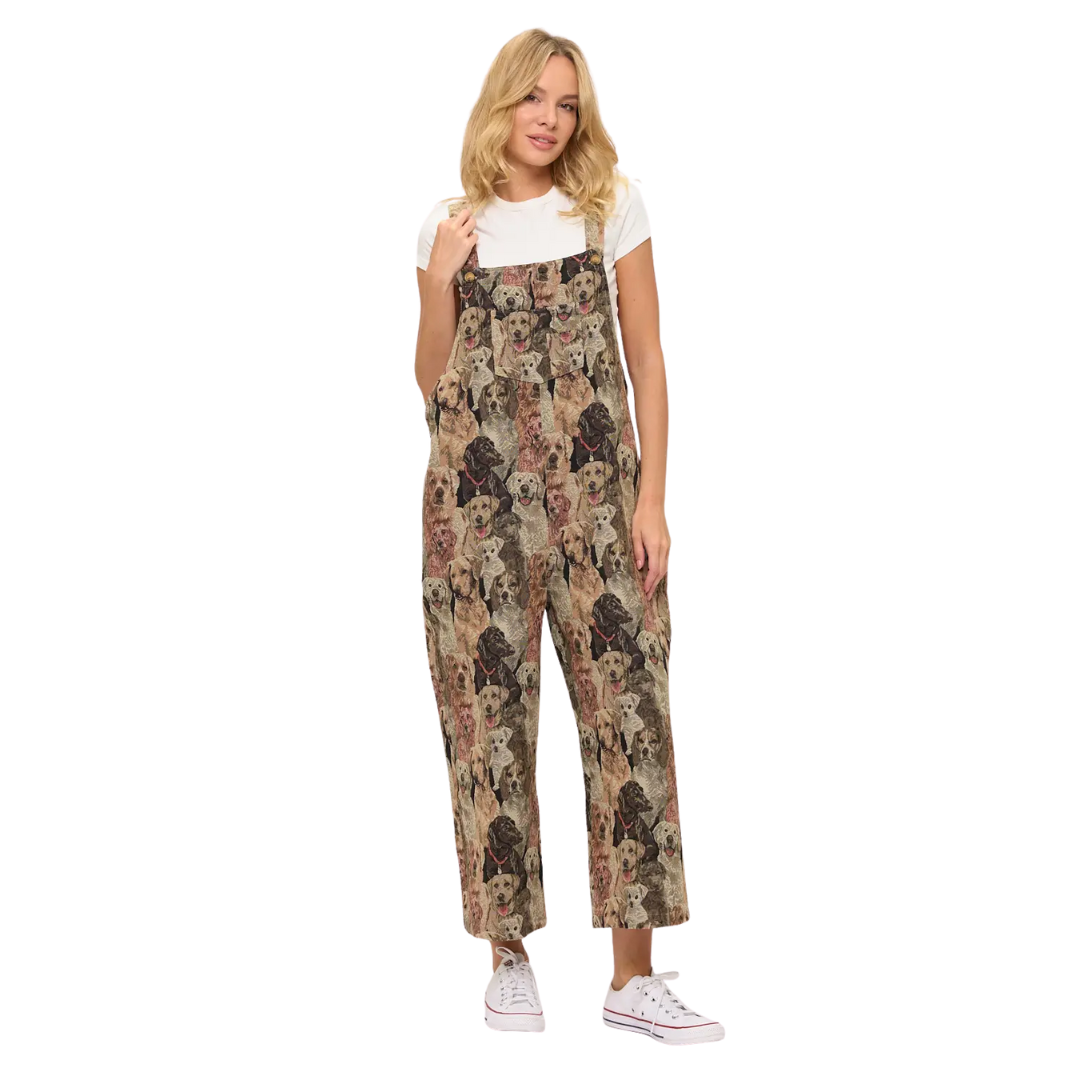 Fall Leaves Print Corduroy Jumpsuit Overall