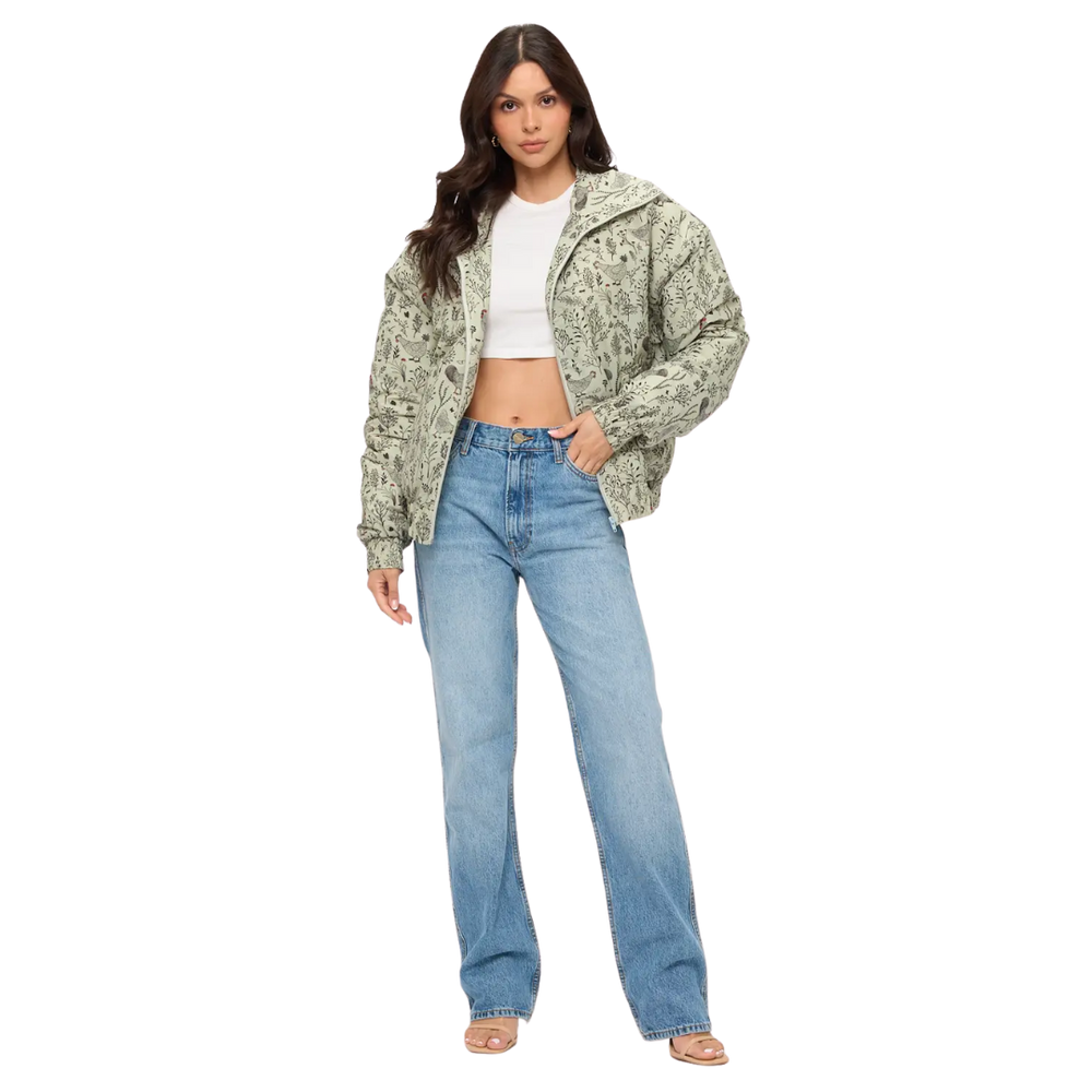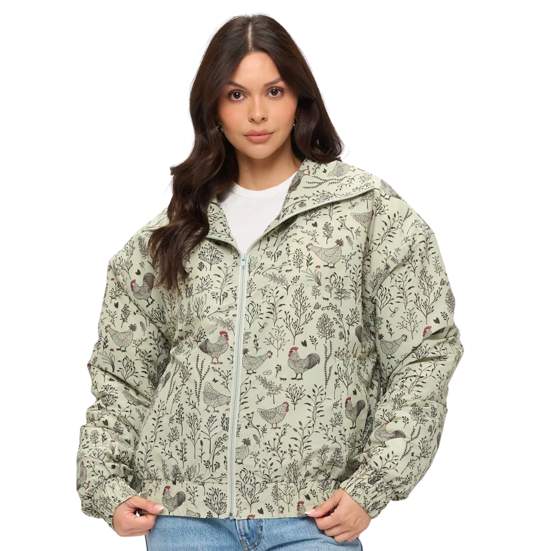 Printed Fleece Henley Zip Up with Pockets - Lavender