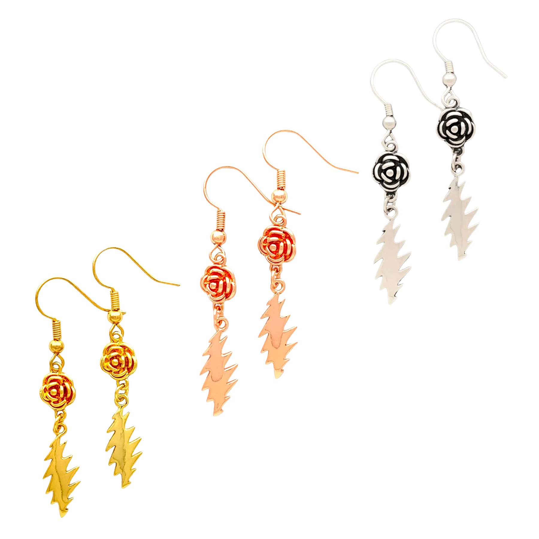 grateful dead rose & bolt dangle earrings.
