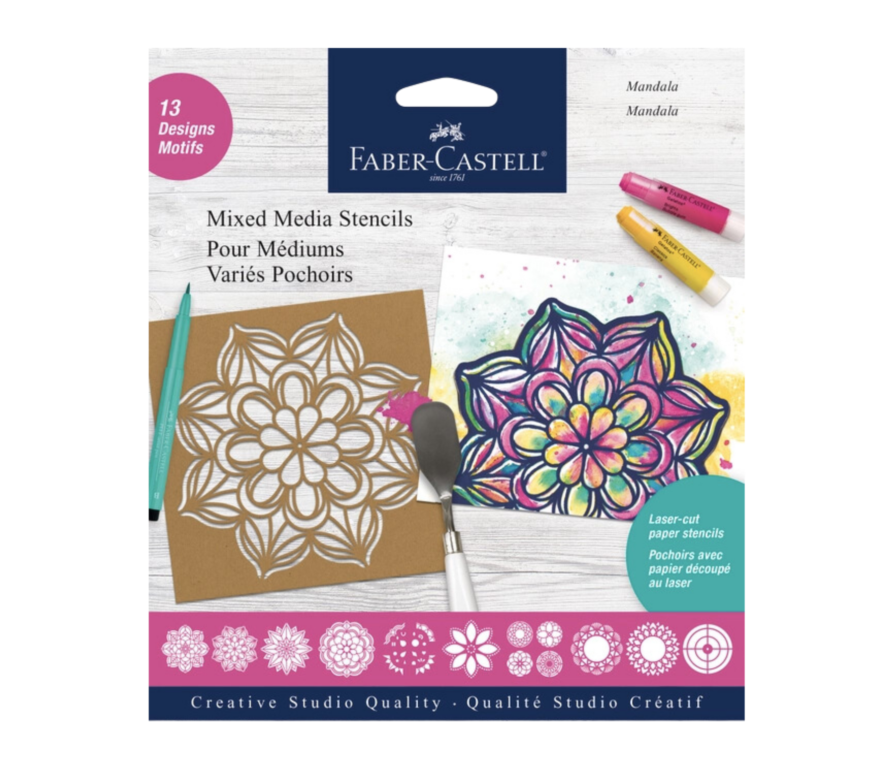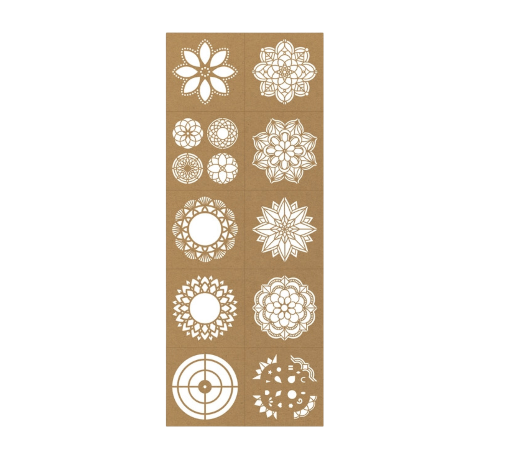 Create beautiful DIY inspirational paper crafts with these reusable paper stencils. Designer patterns are perfect for embellishing. Use gelatos to add unique designs to mixed media projects or use them as an element in mixed media work. The paper stencils are durable. It is suggested to coat them with a glaze medium to extend their use. For clean detail, coat the stencil with repositionable spray adhesive prior to use.