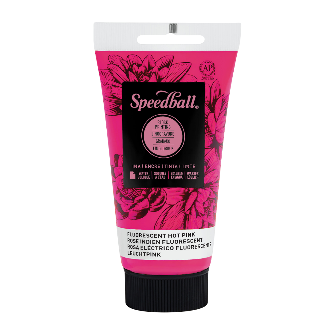 Water-Soluble Block Print Ink 2.5oz - Fluorescent Hot Pink