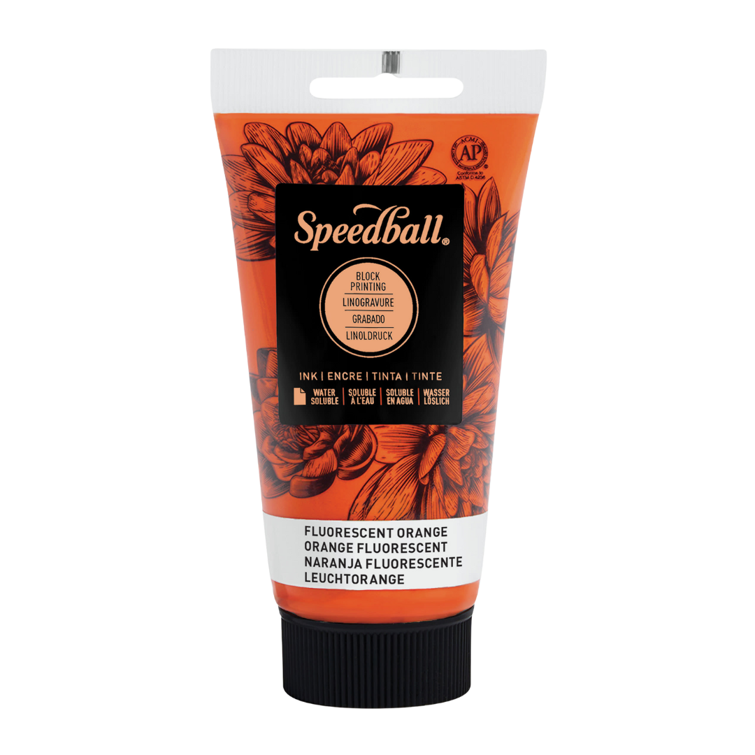 Water-Soluble Block Print Ink 2.5oz - Fluorescent Orange