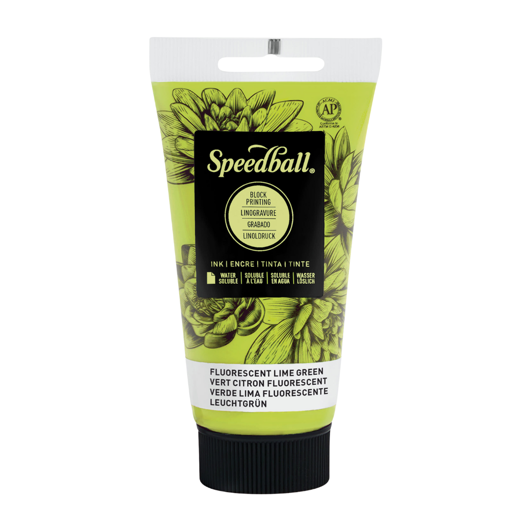 Water-Soluble Block Print Ink 2.5oz - Fluorescent Lime Green