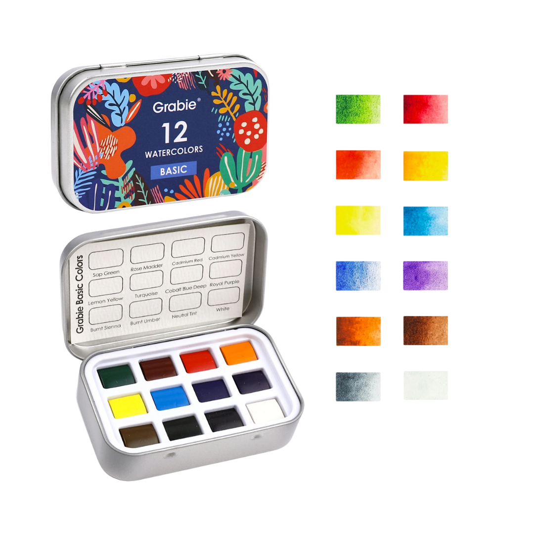 Watercolor Pocket Set of 12 with Brush - Essential Colors