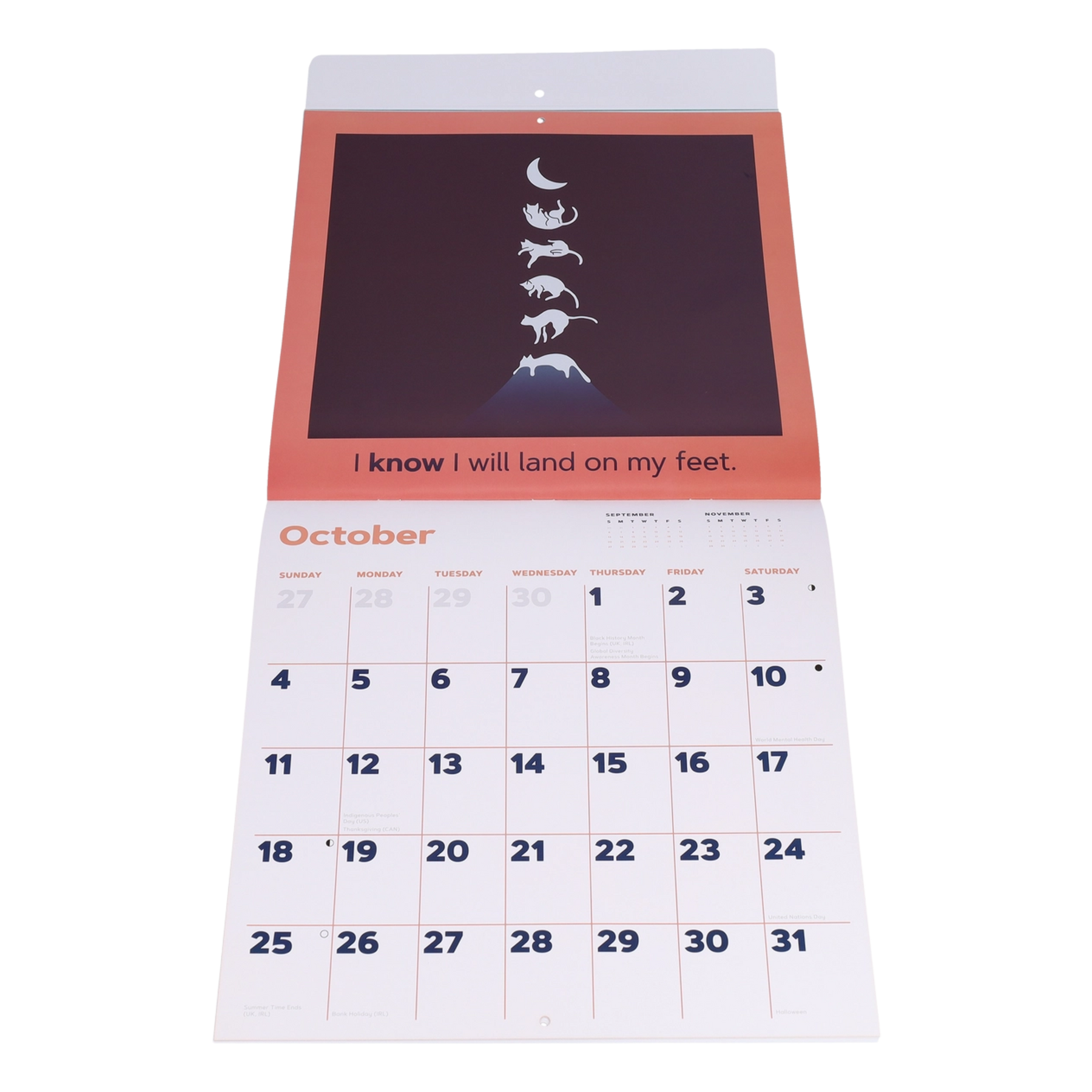 Interactive Fun – Enjoy searching for the cleverly concealed felines each month, then reflect on the uplifting affirmation to inspire your days.