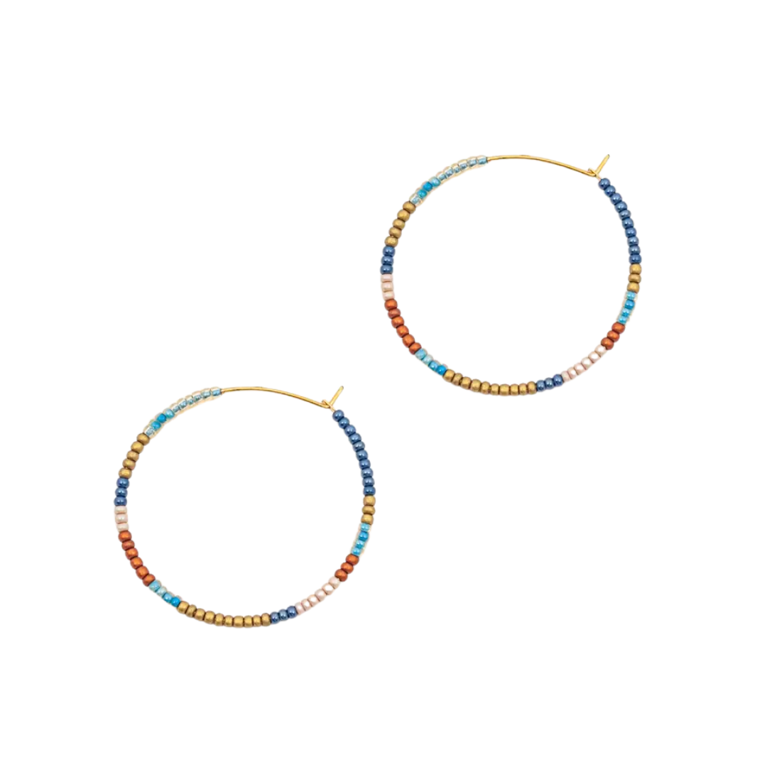 Add a playful twist to the classic hoop with these Beaded Hoop Earrings! ✨ Crafted with vibrant glass seed beads on thin wire metal hoops, they’re the perfect pop of color to brighten any look. Lightweight, bold, and endlessly fun!