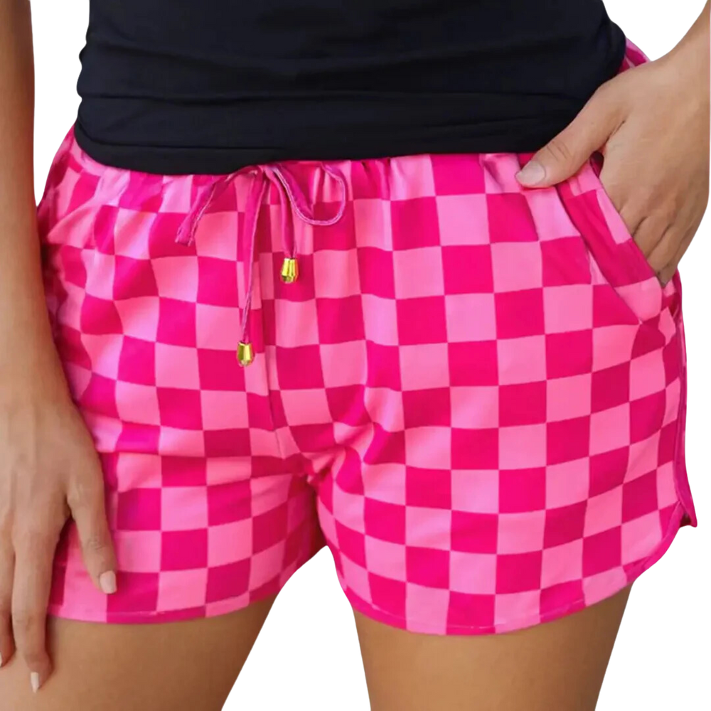 Checkered Drawstring Casual Shorts
