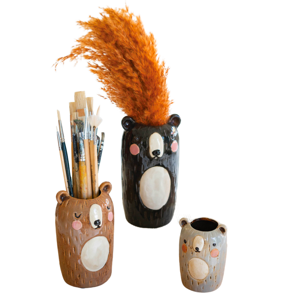 Stoneware Taper Holder w/ Handles, Sand Finish