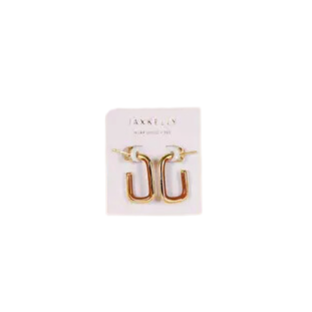 Cream Enamel Large Rectangle Gold Hoop Earrings